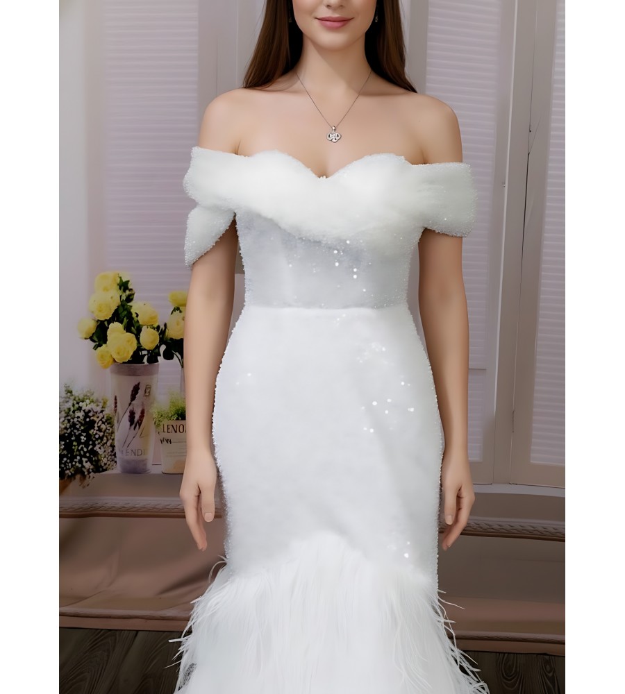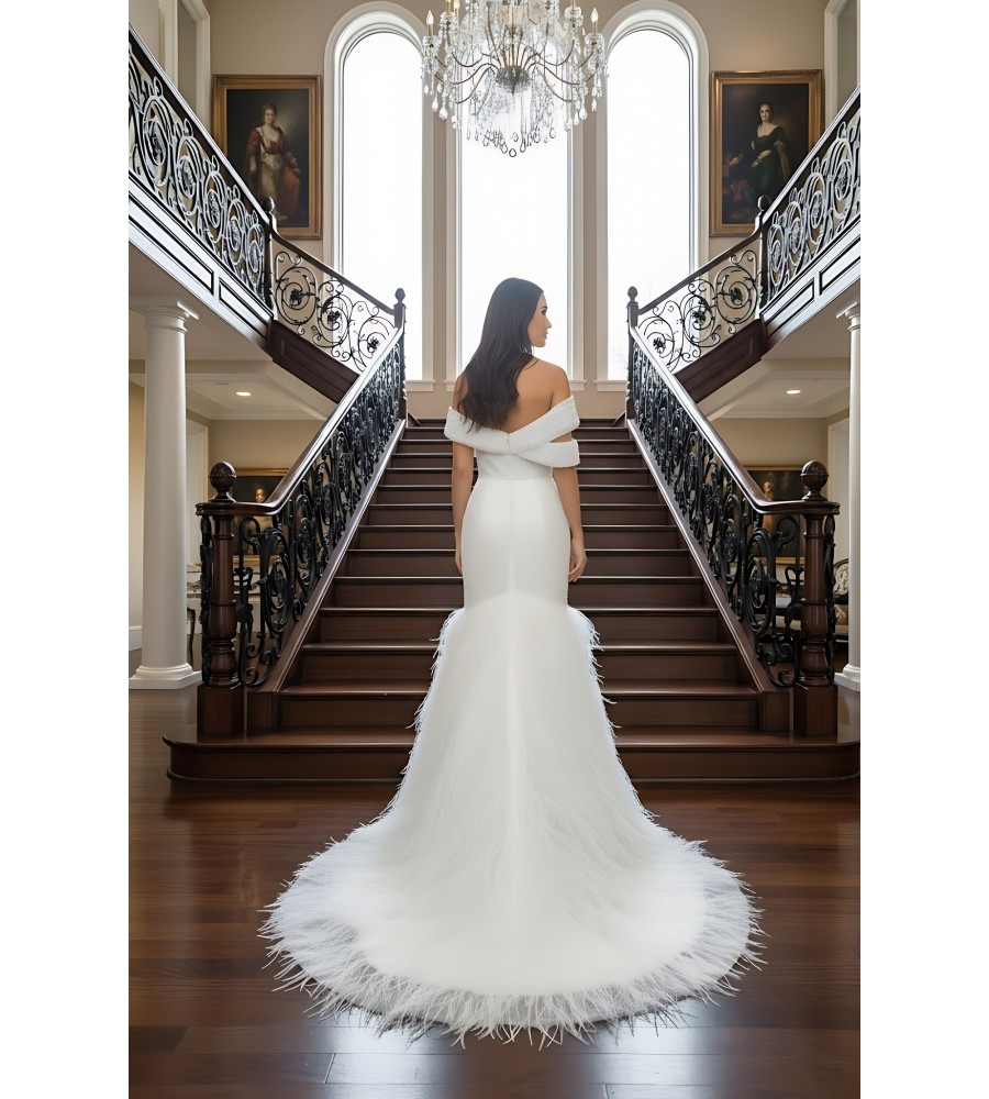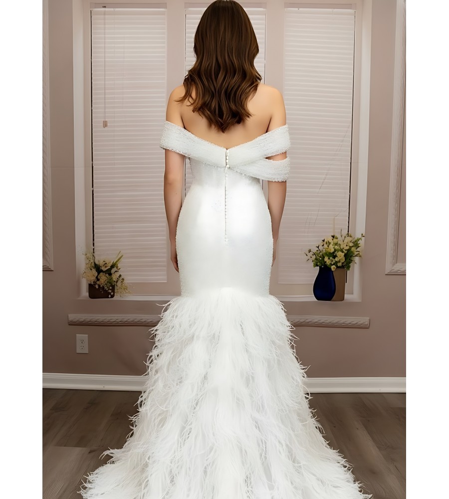 Wedding Dress - Beaded and Sequined Tulle Mermaid with Feather Skirt- LV-M5002F