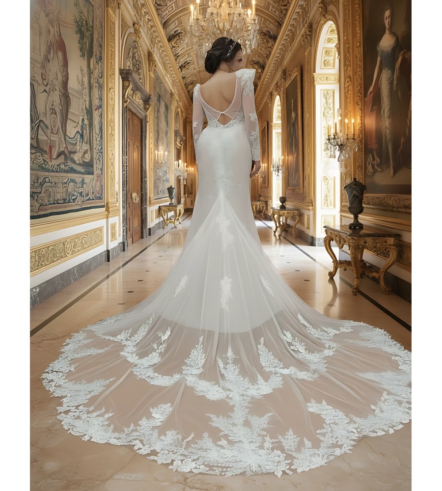 - Dual tiers sheer lacy train