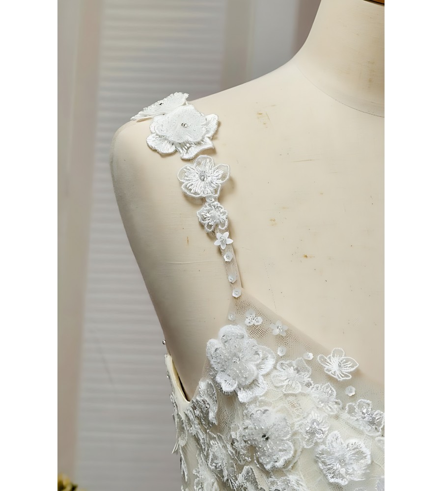 Tags: Tulle, Floral Lace Appliqued, Spaghetti Straps, Overskirt, Fitted and Flare