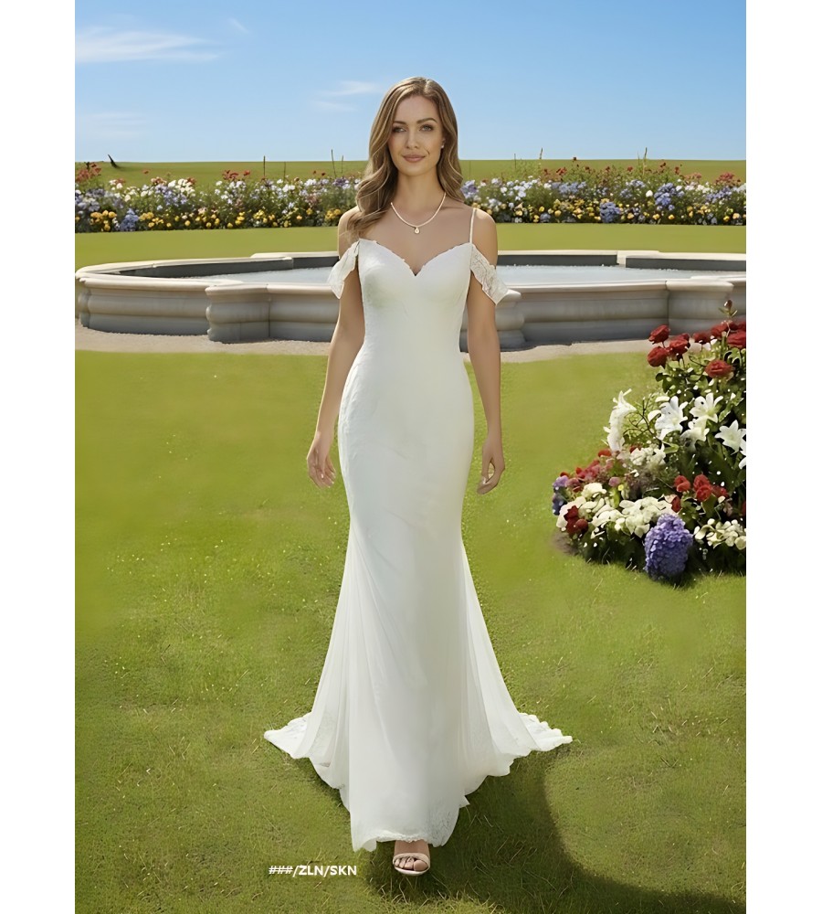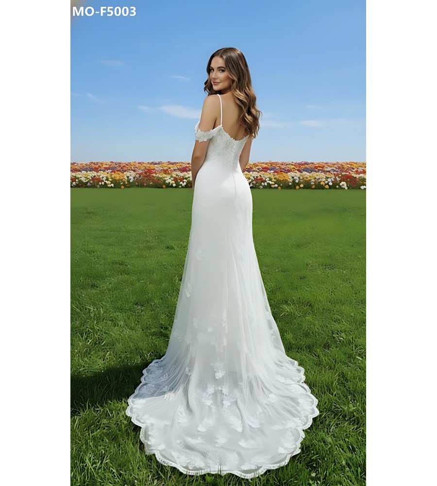 Fitted and Flare - Off the Shoulder Sequined Floral Lace Wedding Dress - MO-F5003