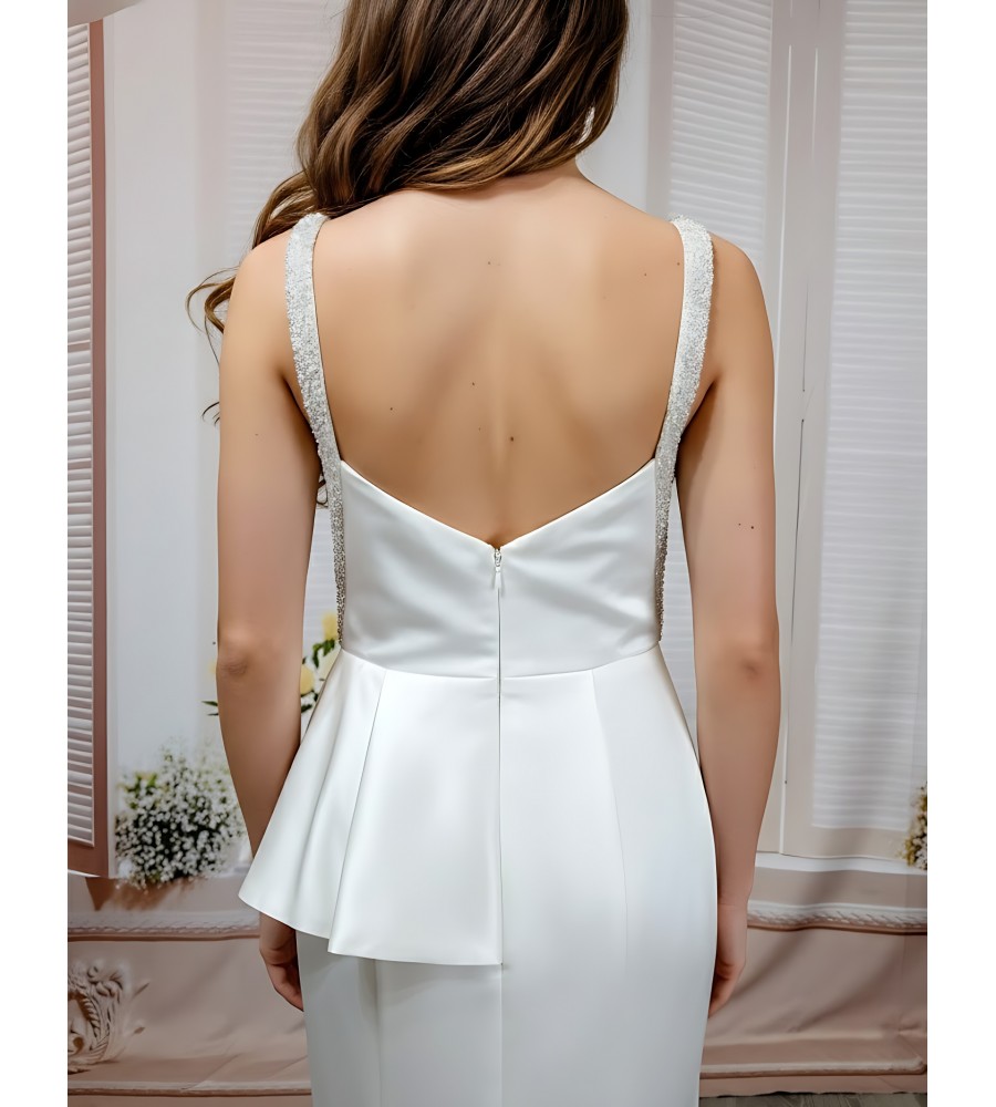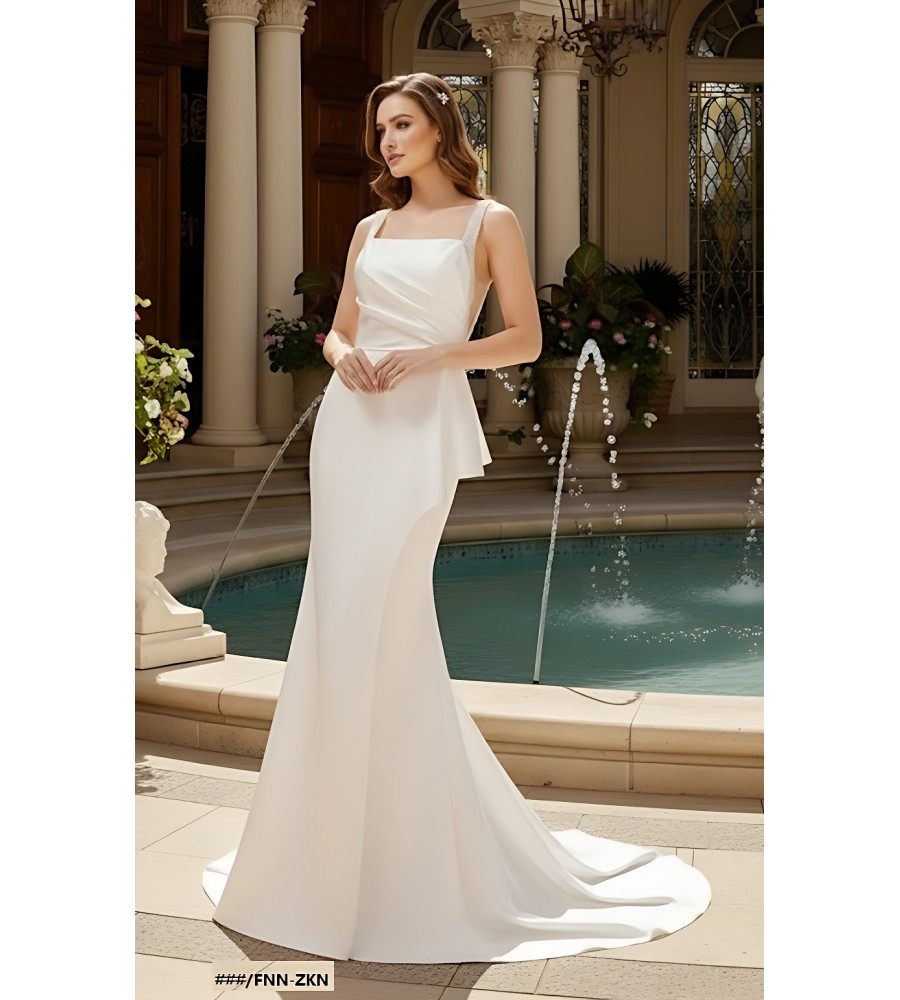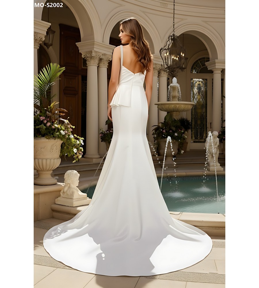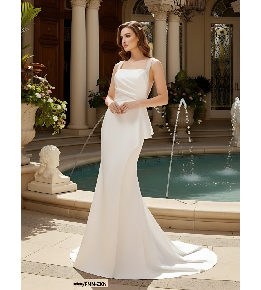 Fitted N Flare Satin Square Neckline Ruffle Slit Skirt Wedding Dress - MO-S2002